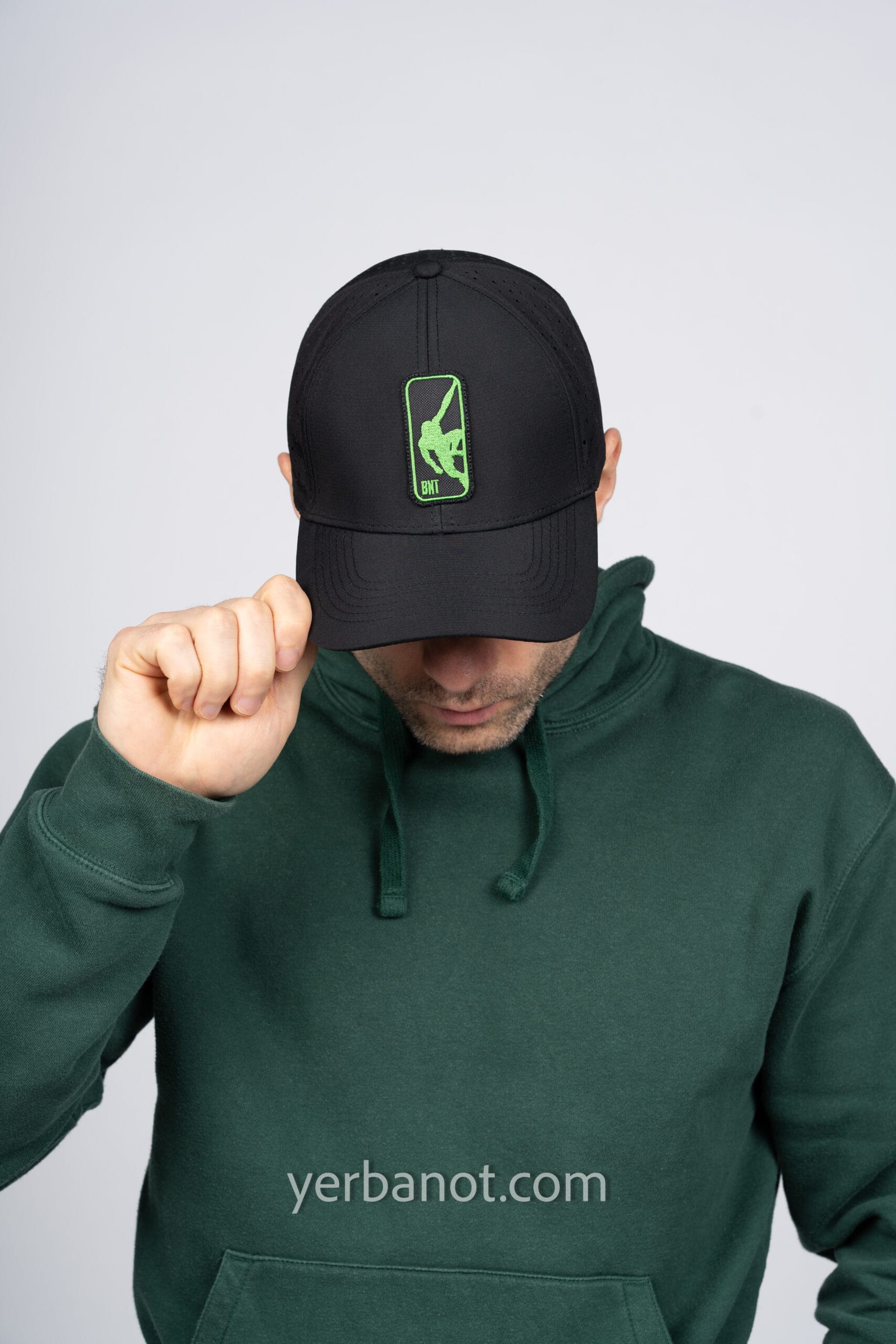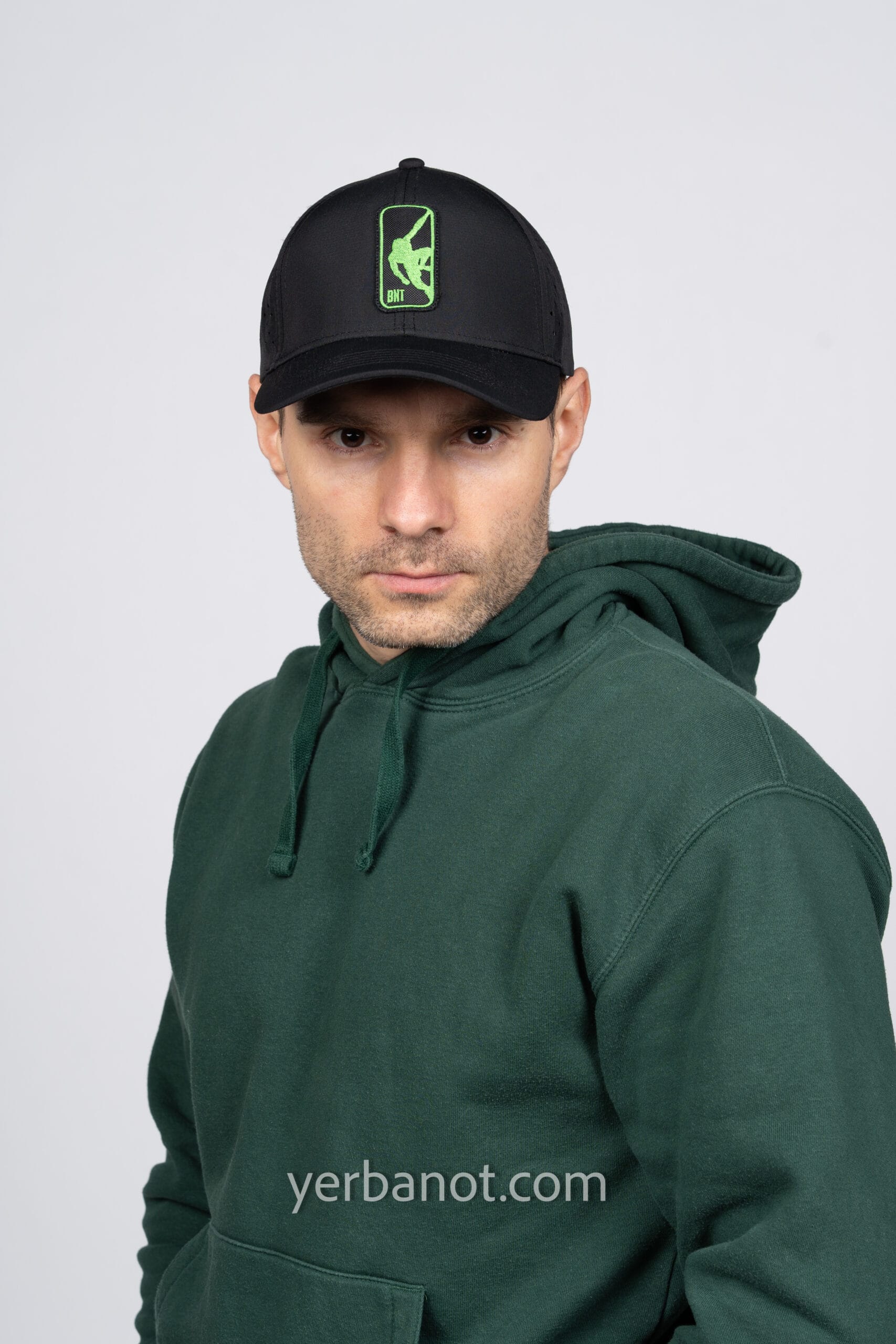 Czapka posiada naszywkę z zielonym haftowanym logo BNT sport oraz firmową metkę BNT.