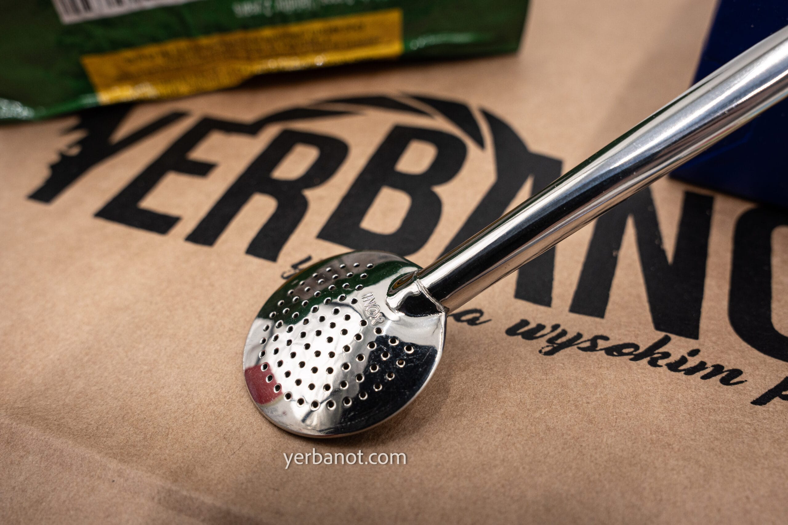 W zestawie jest naczynko z logo BNT oraz słomka tak zwana bombilla wykonana z szlachetnej stali inox 18/8